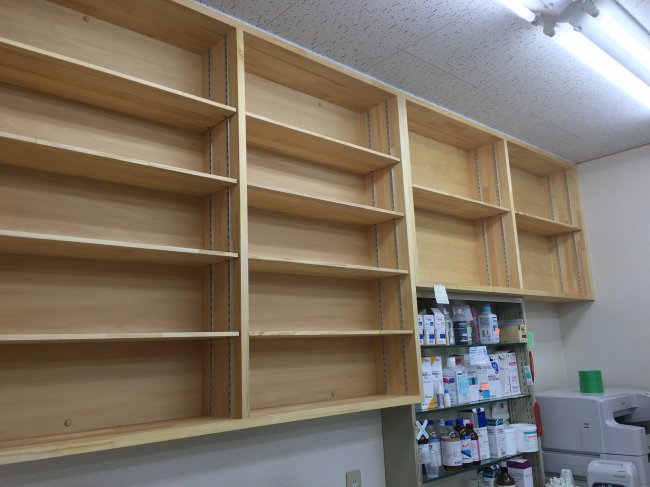 早速、薬局のお客様から、薬をストックする収納棚をご依頼頂き、自社制作し設置に行ってきました!