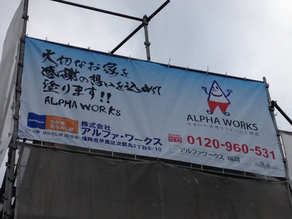 工事着工・足場組 No.173 工事日記登録日:2013.12.13 こんにちは!(^^)! 本日、福岡市西区の現場で外壁屋根塗装リフォームの工事が 着工しました! 今日は足場組です そして新しく新調したPRシートもばっちりです! 今年仕事納めになる最後の現場なので気を抜かず頑張ります! 明日は高圧洗浄です! 屋根からの福岡市景色が最高です < 前の記事へ | 一覧へ | 次の記事へ >